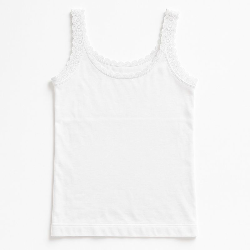 Lækker seamless top i blød og strækbar kvalitet, der giver en behagelig pasform og føles let mod huden. Den er designet med fine blondekanter langs udskæring og stropper, som tilføjer et feminint og elegant udtryk. Den enkle stil gør den nem at bruge både som top alene på varme dage eller som et lag under skjorter, bluser eller strik. En alsidig basisdel, der passer til både hverdag og mere pyntede anledninger. Fås i sort og hvid.