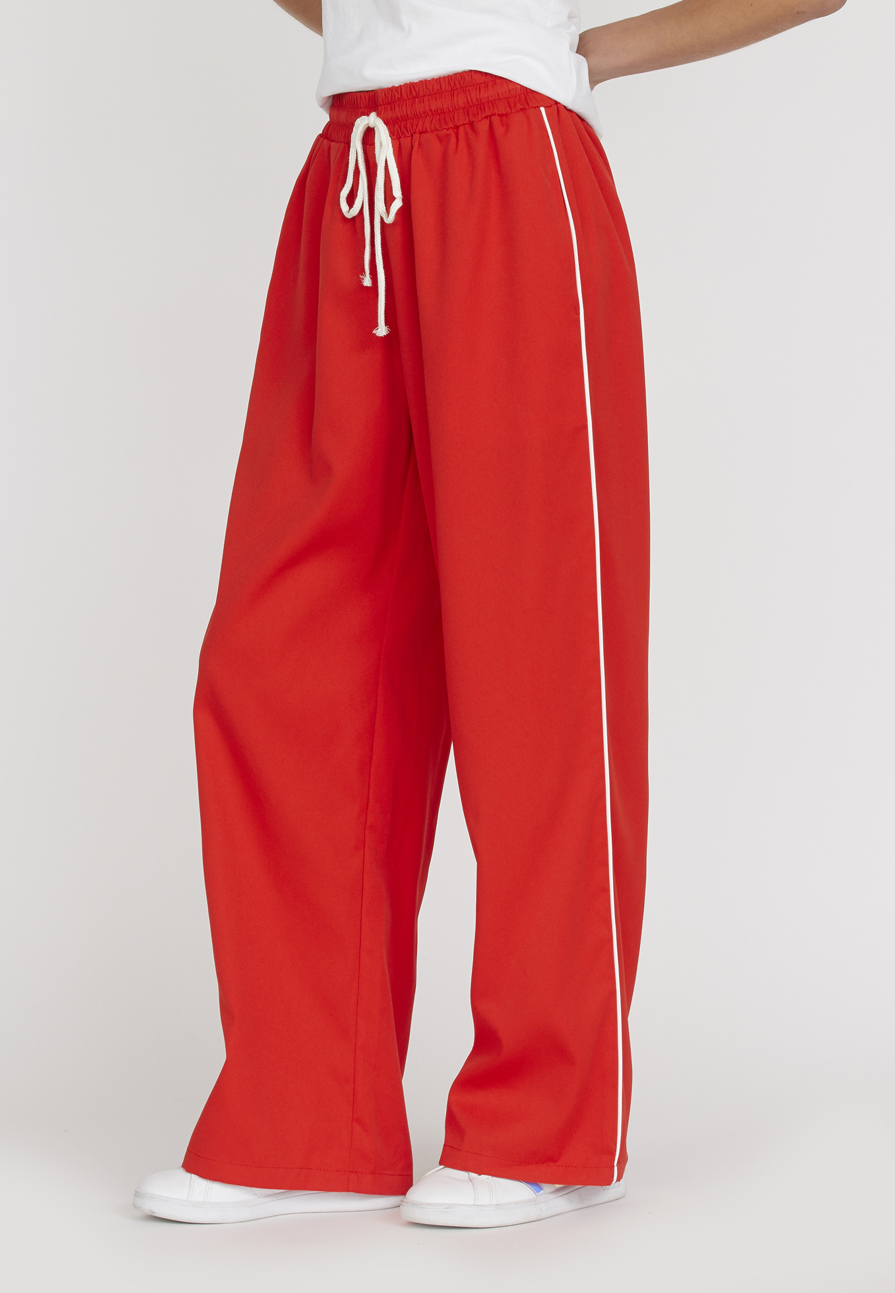 Sisters Point Vemra Pants er et par cool og afslappede bukser med et sporty udtryk. Bukserne har et løst fit med lige ben, elastik og snøre i taljen, som sikrer en behagelig pasform. Den hvide piping langs siderne giver et moderne og stilrent look, der nemt kan styles både casual og trendy. Perfekte til hverdagen med sneakers og en t-shirt eller med en skjorte for et mere gennemført outfit.