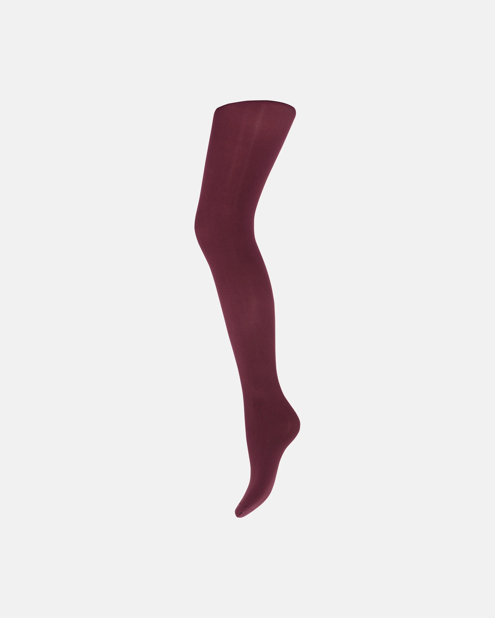 Decoy Microfiber 60 Denier i bordeaux er en blød og mat strømpebuks med god dækning og behagelig pasform. Den strikkes med 3D-teknik for ekstra fleksibilitet og har en komfortabel taljekant og diskret forstærket tå. En varm og alsidig strømpebuks til både hverdag og pænere brug.