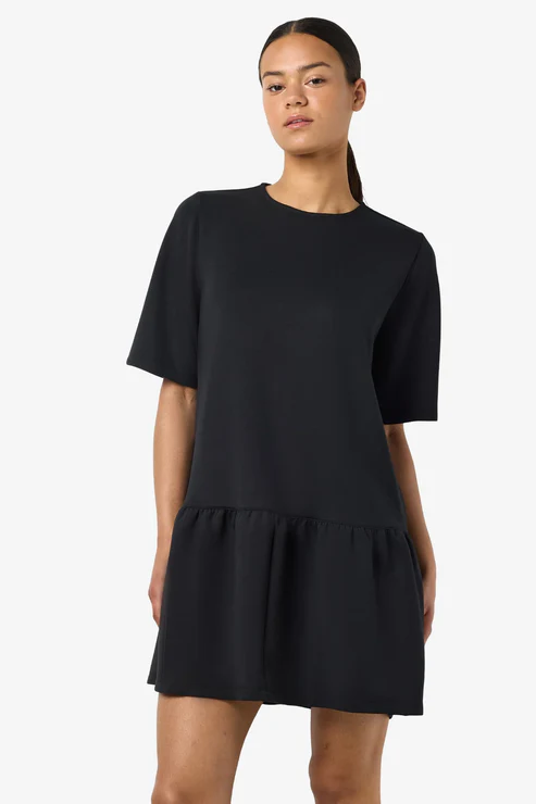 Noisy May Mandy Peplum Scuba Dress Curvy er en elegant og flatterende kjole designet til at fremhæve formerne. Kjolen har et peplum-detalje ved taljen, som giver en smuk silhuet, og den bløde scuba-kvalitet sikrer både komfort og en glat pasform. Med sit klassiske snit og moderne finish er kjolen perfekt til både hverdag og særlige lejligheder.
