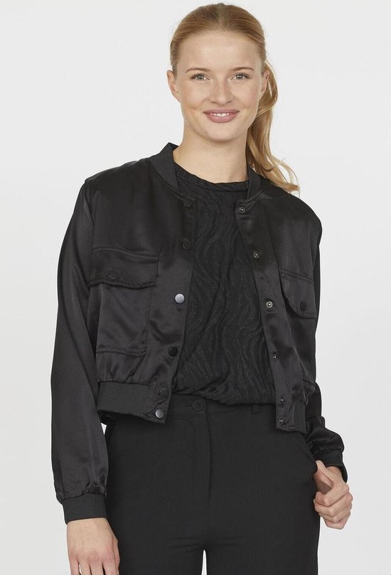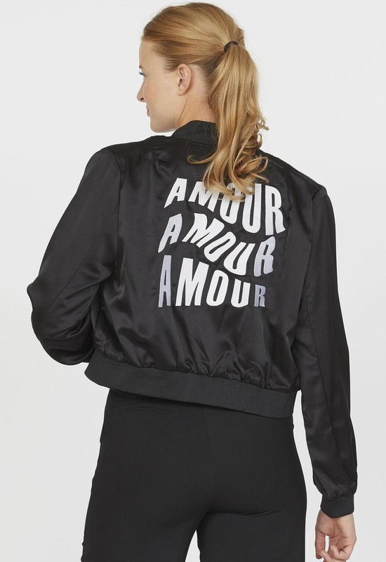Sisters Point Garwin Jakke i Black/Amour er en cool og feminin jakke med et moderne bomber-inspireret snit. Jakken har et enkelt sort udtryk foran og et iøjnefaldende Amour-print på ryggen, som giver et trendy twist. Den lette kvalitet og afslappede pasform gør den nem at style til både bukser, kjoler og nederdele – perfekt til hverdagsbrug.