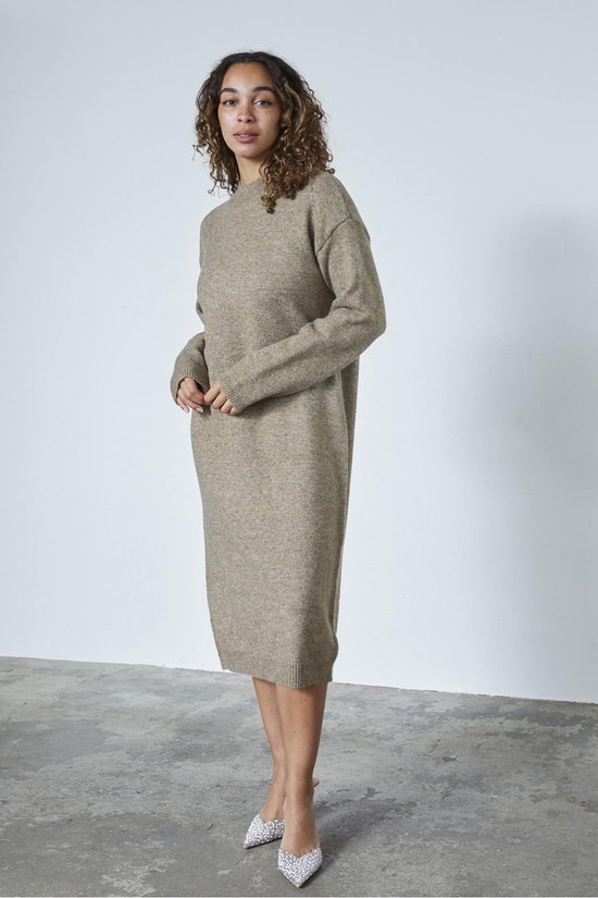Sisters Point Luca Dress i Sand er en elegant og enkel strik kjole med et tidløst udtryk. Den lyse sandfarve giver et let og feminint look, som er nemt at style til både hverdag og mere pæne anledninger. Kjolen har en behagelig løs pasform og er et alsidigt valg, der passer perfekt ind i enhver garderobe.