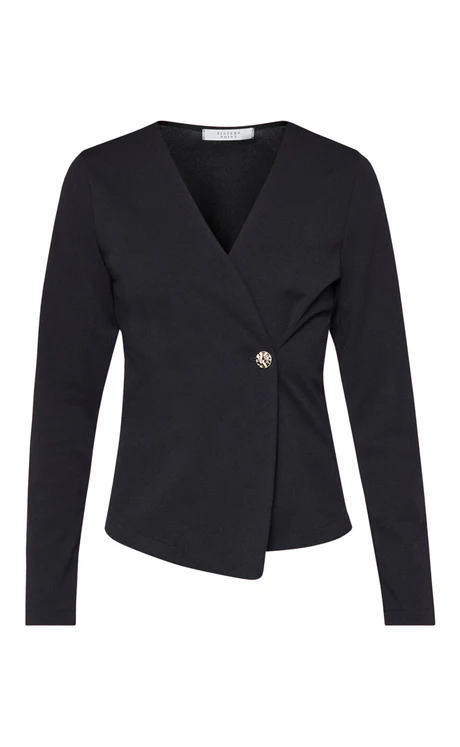 Sisters Point Gevela Bluse er en elegant og feminin bluse med et stilrent udtryk. Den flotte slå-om-effekt og V-udskæring giver et flatterende look, mens den enkle lukning tilfører et eksklusivt touch. Blusen er nem at style til både bukser og nederdele og fungerer perfekt til både hverdag og mere formelle anledninger.