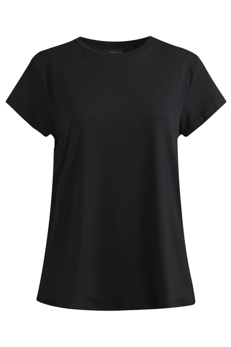 Liberté Essentiel Alma T-shirt er en enkel og feminin t-shirt i farven Night Sky med et tidløst udtryk. Den komfortable pasform og det bløde materiale gør den behagelig at have på hele dagen. T-shirten er nem at style og passer perfekt til både afslappede hverdagslooks og mere velklædte outfits, alt efter hvordan den kombineres.
