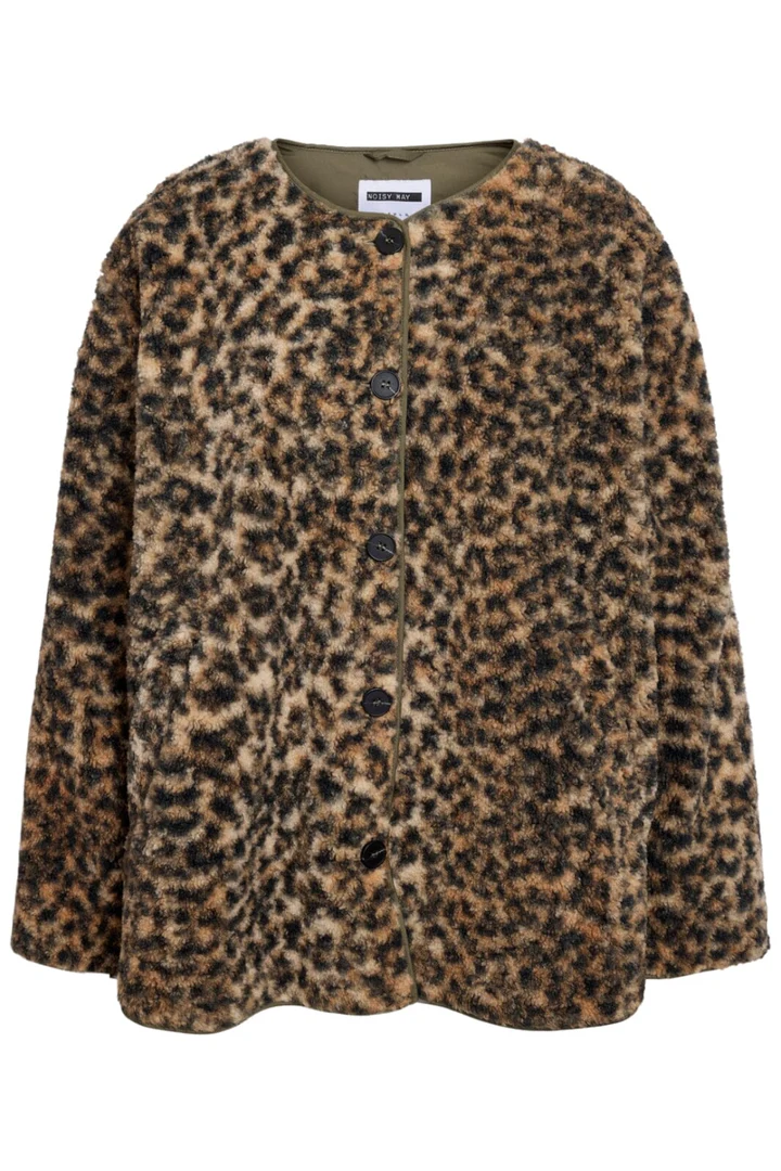 Noisy May Feline Loose Teddy Jacket Leo er en blød og trendy teddyjakke med leopardmønster i beige og brune nuancer, der giver dit outfit et cool og iøjnefaldende udtryk. Den løse pasform sikrer en afslappet silhuet og gør den behagelig at have på, uanset om du styler den over en strik, sweatshirt eller kjole. Perfekt til hverdagsbrug, når du ønsker både varme og kant i dit look.