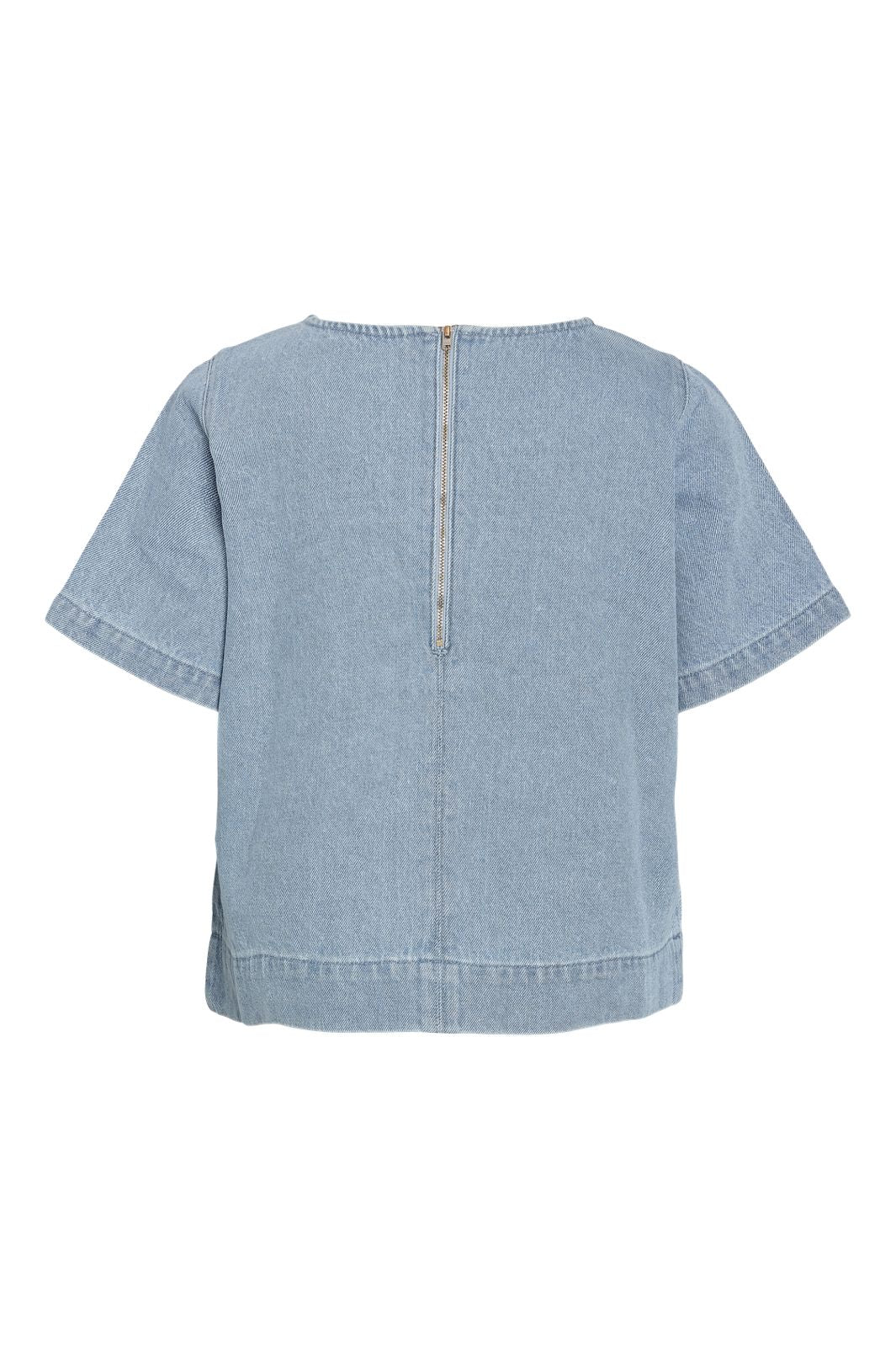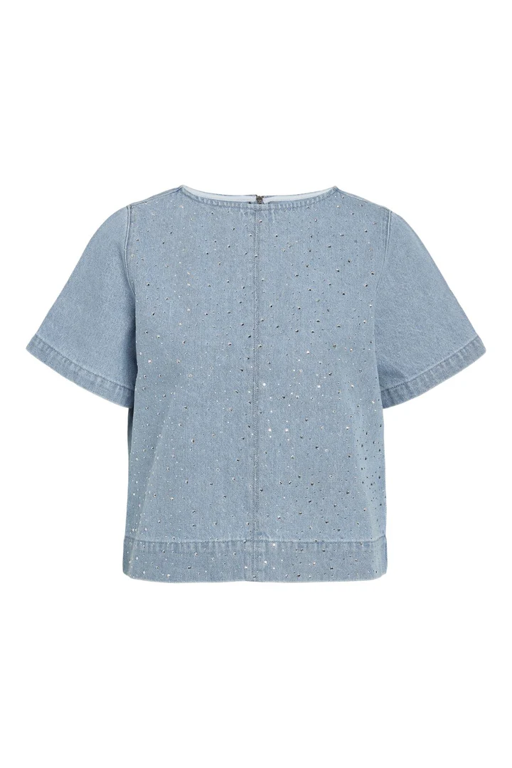 Noisy May Jannel 2/4 Regular Tshirt Light Blue Denim er en lyseblå denimskjorte med skinnende detaljer, der tilfører et feminint og moderne touch. Det slim fit design fremhæver figuren og skaber en flatterende silhuet, mens de korte ærmer giver et let og stilrent udtryk. Lynlåsen på ryggen tilfører en rå detalje og gør den nem at tage af og på. Perfekt til både hverdag og fest, alt efter hvordan du styler den.