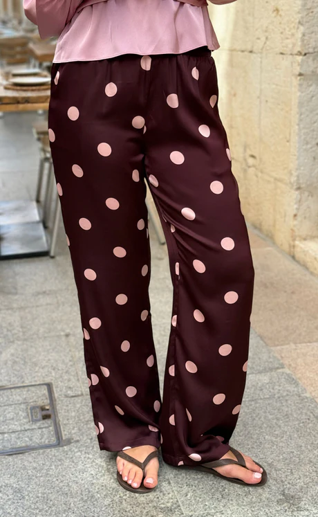 Liberte Essentiel Dotti Pants Plum Rose Big Dot er stilfulde bukser fra Liberté med et feminint prikket design og en let kvalitet, der falder flot og ubesværet. Den elastiske talje sikrer en komfortabel og fleksibel pasform, som gør dem nemme at hoppe i og behagelige at have på hele dagen. De lange, lige ben giver et afslappet og moderne udtryk, der passer perfekt til både hverdagsbrug og mere festlige lejligheder.