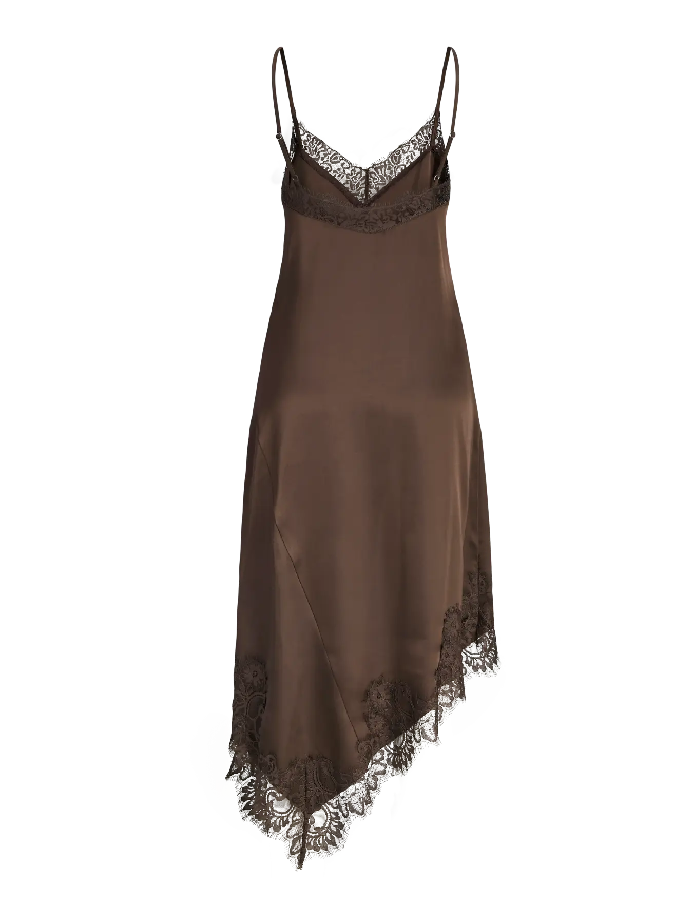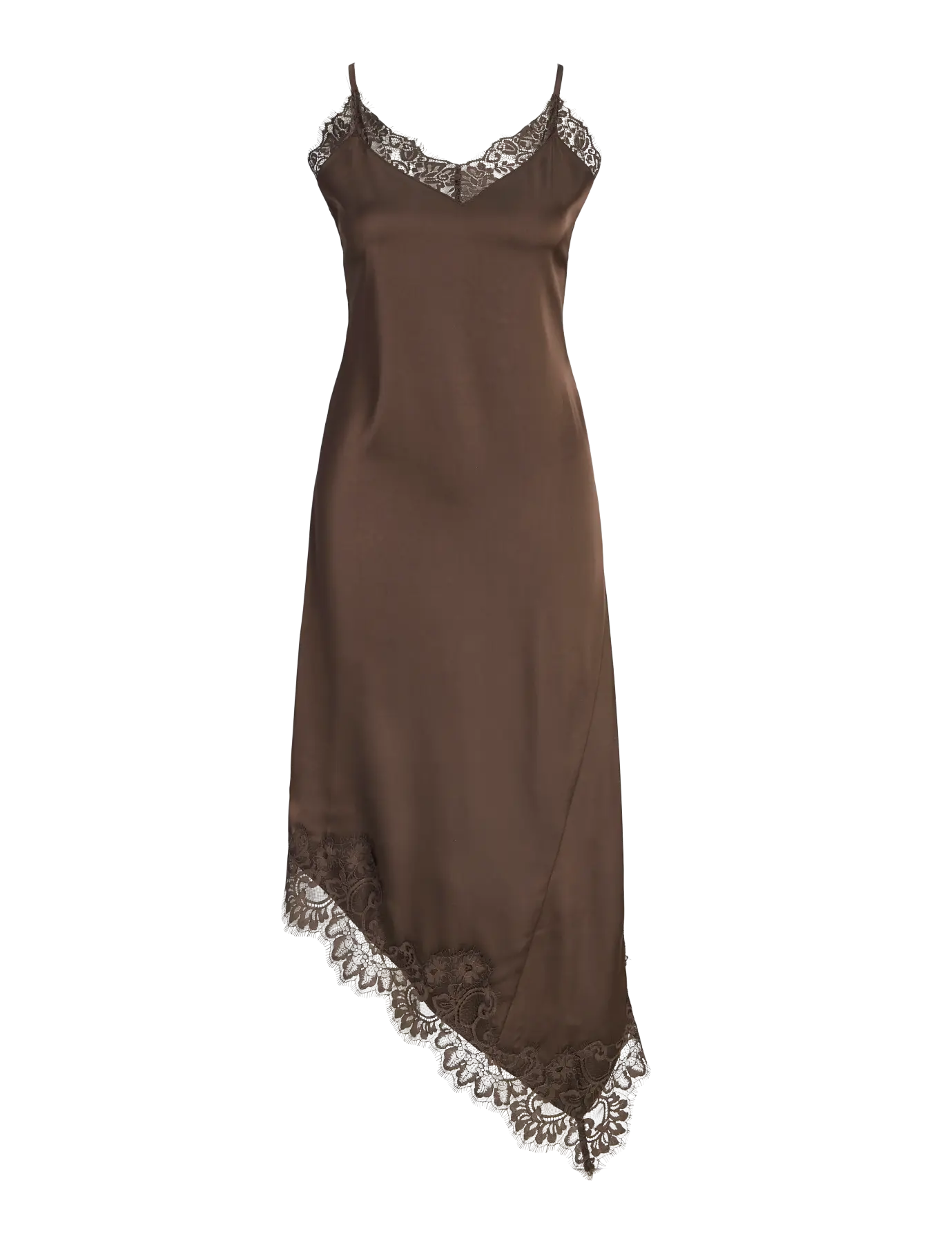 JJXX Vima Satin Lace Mix Dress er en moderne, skrå og lang kjole i en smuk mørk brun farve med tynde stropper. Den kombinerer satin-look med fine blonde-detaljer og har et elegant snit, der skaber bevægelse og et sofistikeret udtryk. Perfekt til festlige lejligheder eller særlige arrangementer, hvor du ønsker et tidssvarende og iøjnefaldende look.