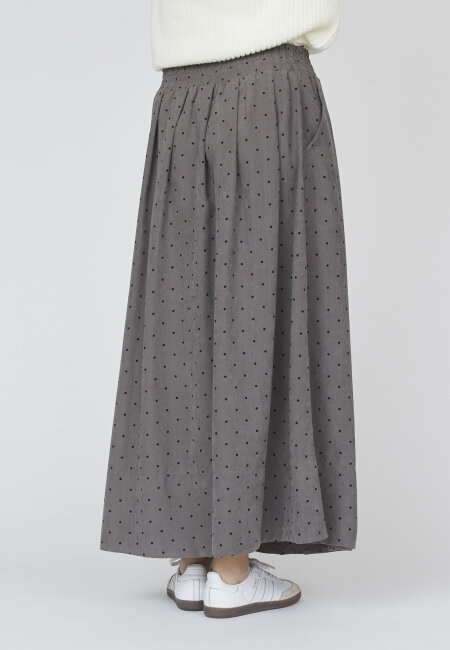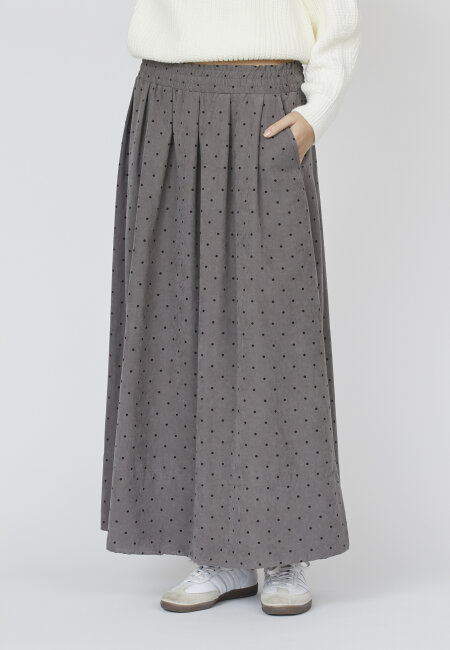 Sisters Point Usla Long Skirt Grey Dot er en super fin, lang nederdel med et cool prikket mønster. Den har en løstsiddende pasform og elastik i taljen, som gør den behagelig at have på. Nederdelen har også praktiske lommer i siden og er nem at style til både hverdag og mere afslappede looks.