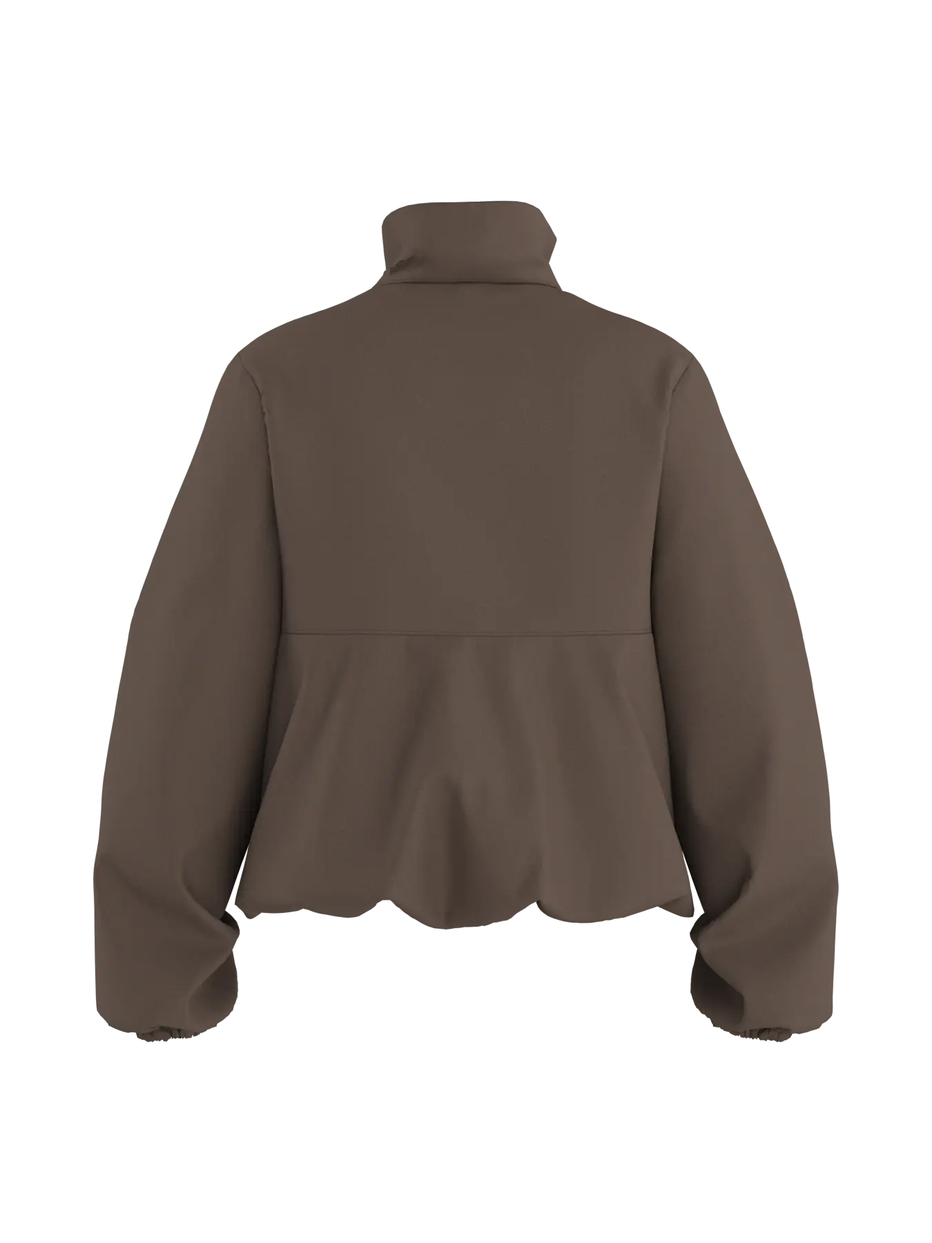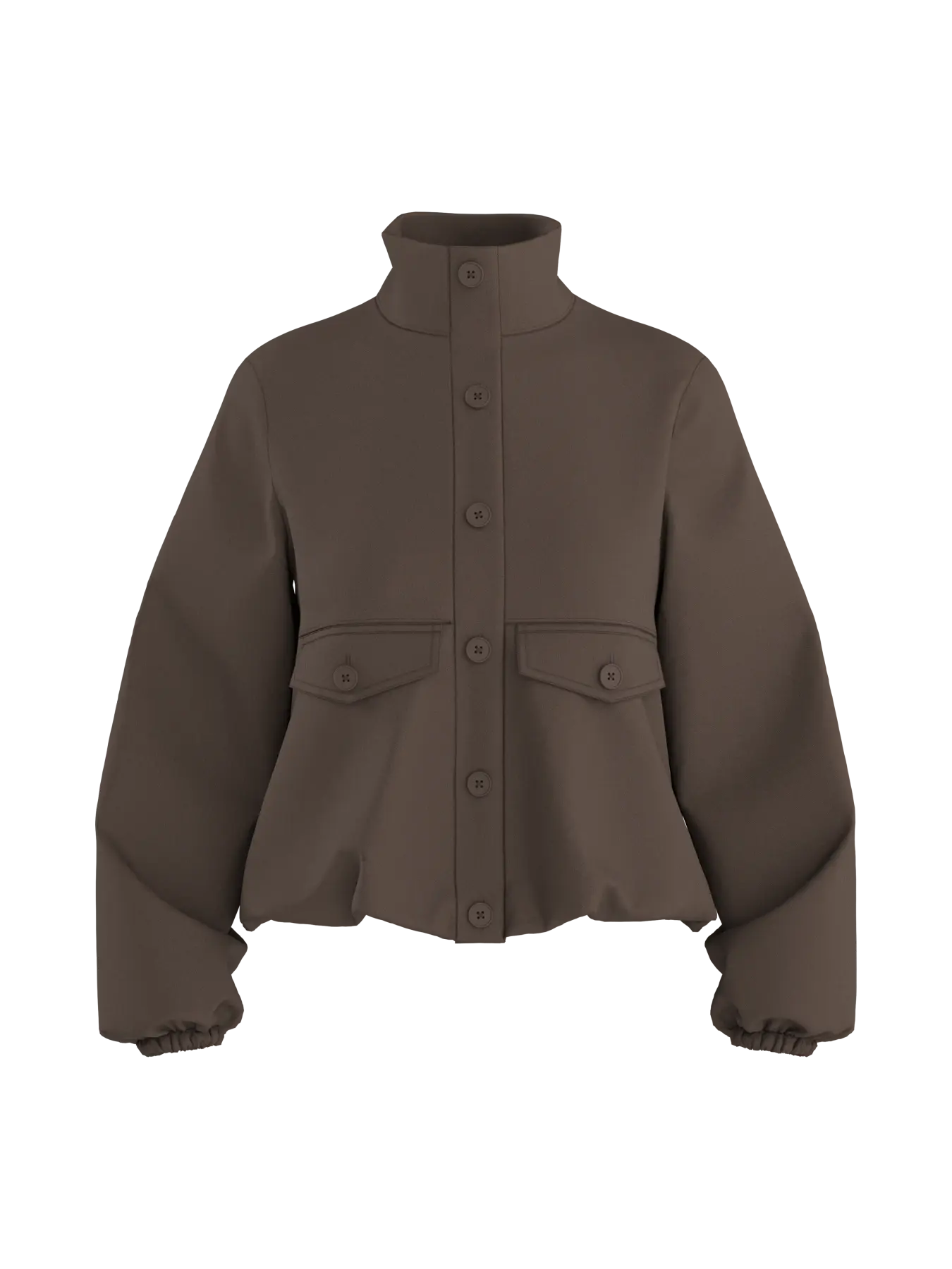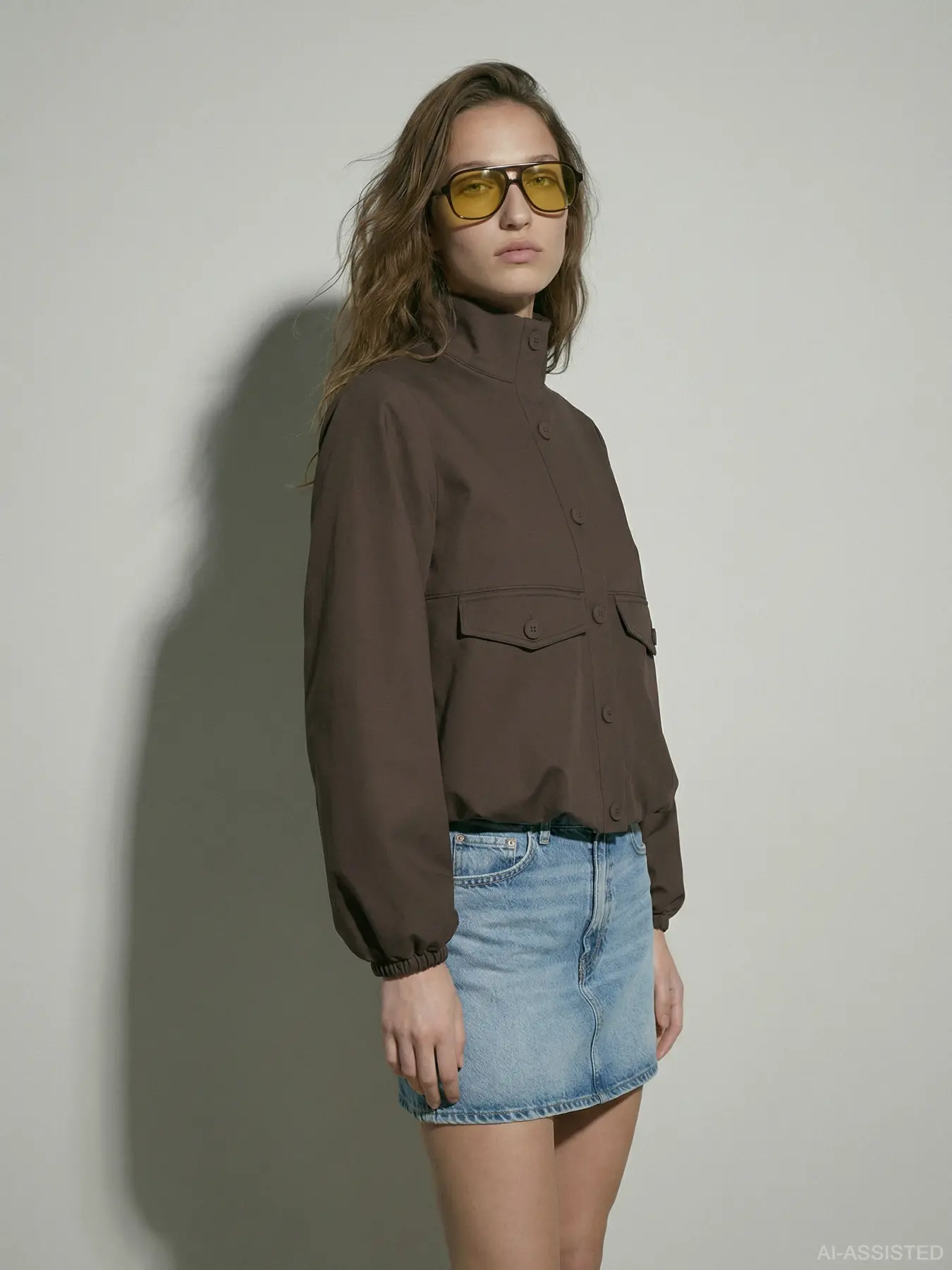 HYPEDROP Lucia High-Neck Shacket i en smuk brun farve er en stilfuld mellemting mellem skjorte og jakke. Den har et højt kraveparti, to forlommer med knaplukning og knapper hele vejen ned foran. Den løstsiddende pasform gør den super behagelig, samtidig med at den giver et moderne og cool look.
