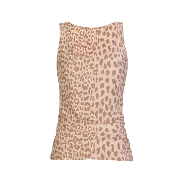 Liberte Essentiel Alma Turn Top Desert Lux Leo er en alsidig turn top, der kan vendes og styles på flere måder, så du nemt kan variere dit look. Den tætsiddende pasform kombineret med flatterende rynkedetaljer i siderne fremhæver figuren og giver et feminint udtryk med lidt ekstra kant. Den bløde Alma-kvalitet sikrer høj komfort, og toppen er perfekt til både jeans, nederdele eller som et stilfuldt sæt med matchende bukser i samme print.