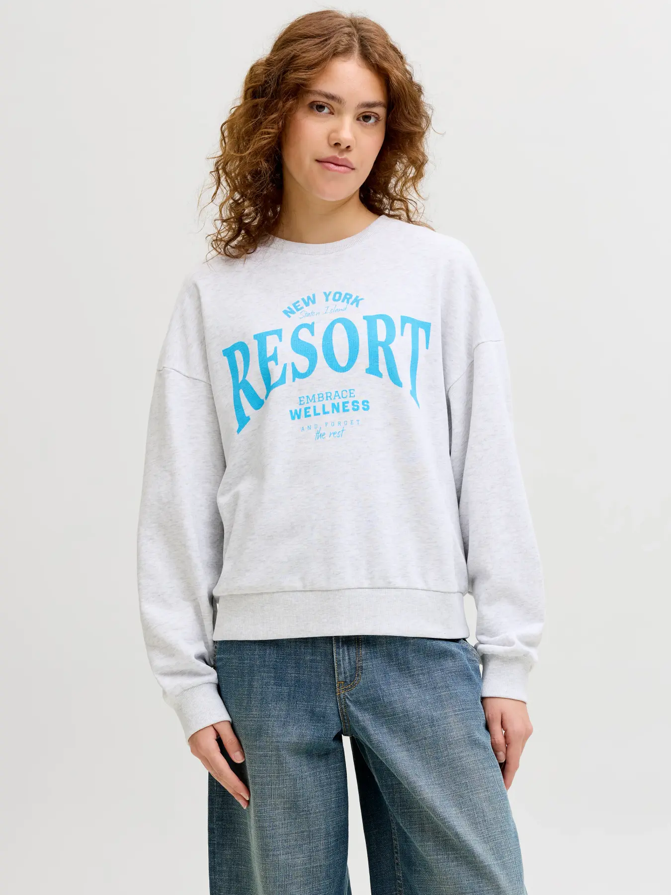 JJXX Merle Spring Short Crew Swt White Melange er en blød og behagelig sweatshirt i let sweatmateriale, ideel til afslappede hverdagslooks. Den har klassisk O-udsnit med ribstrikket krave, lige søm og skulder med oversnit, der giver en moderne og afslappet pasform. Det tone-i-tone-mottoprint tilføjer et diskret, stilfuldt touch, mens det bløde materiale sikrer komfort hele dagen.