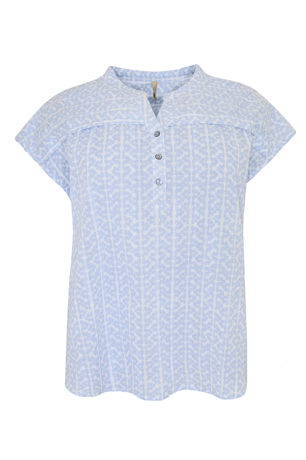 Cassiopeia Balulla Top Blue Combi er en let og behagelig top i blød bomuld med et friskt lyseblåt print. Den har et enkelt og feminint design, der gør den nem at style til både hverdag og afslappede anledninger, mens den luftige kvalitet sikrer god komfort hele dagen.