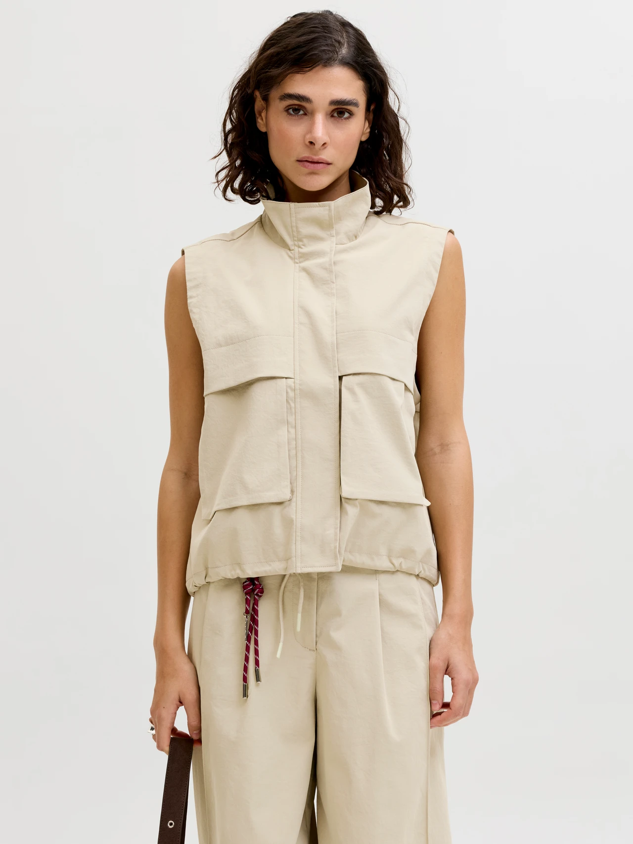 JJXX Carol Olive Vest er en tidløs essential skabt til at holde sæson efter sæson. Den vævede kvalitet giver et stærkt og slidstærkt udtryk, samtidig med at pasformen bevares uden at strække sig. Style den med de matchende bukser for et gennemført og moderne look, der både er enkelt og skarpt.