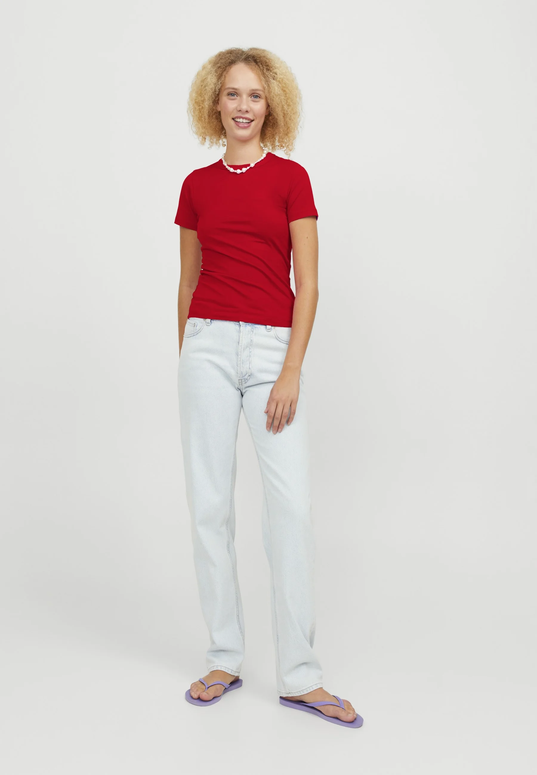 JJXX Gigi Tee Rød er en sporty og stilfuld T-shirt i en varm, dyb rød farve, der giver liv til dit outfit. Med sin klassiske rund hals og korte ærmer tilbyder den et enkelt og tidløst design, der passer til mange anledninger. Det elastiske materiale sikrer en fleksibel og behagelig pasform, så du kan bevæge dig frit hele dagen.