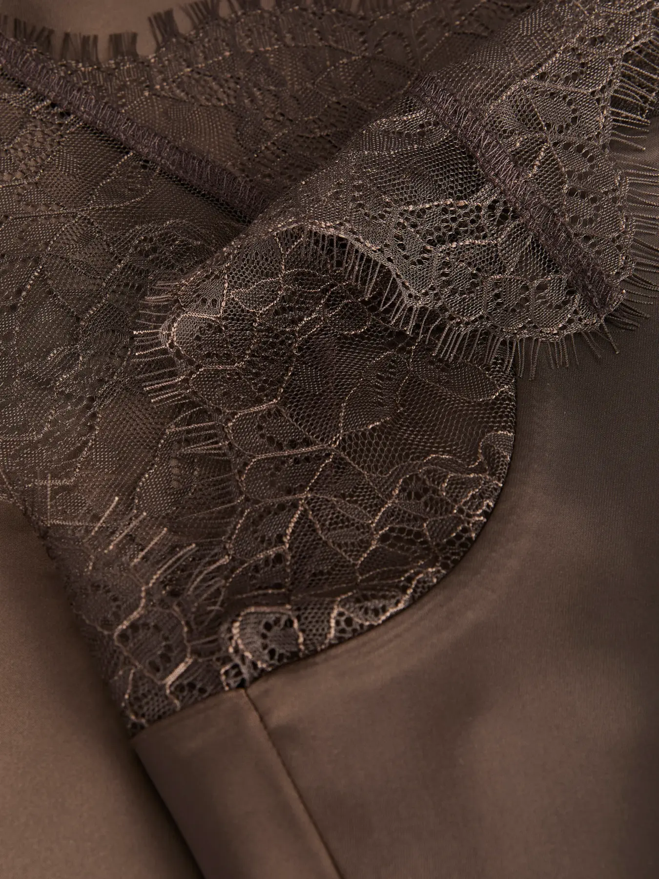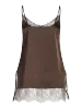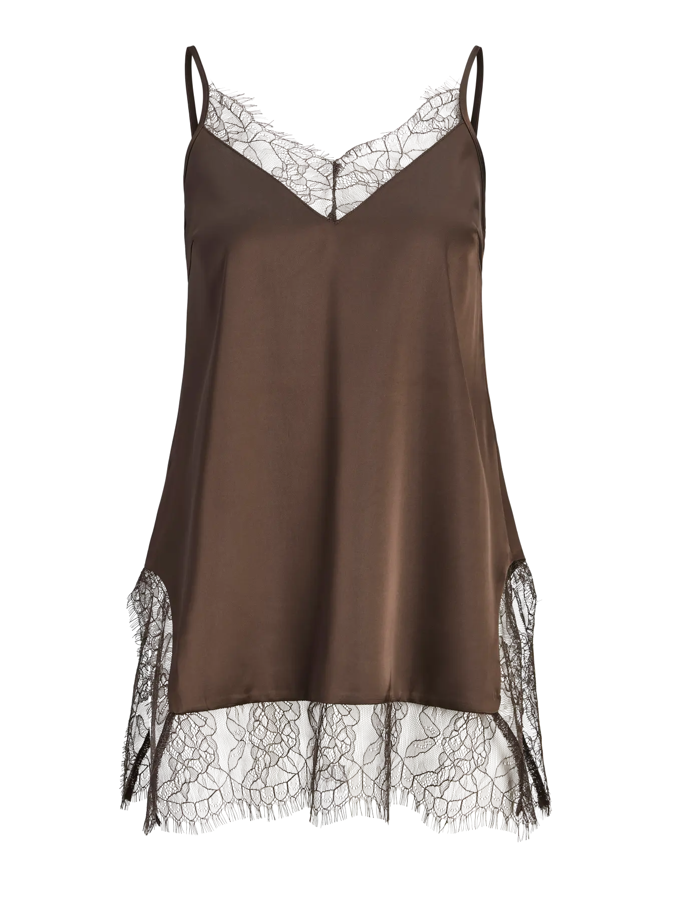 JJXX Vima Singlet Satin Lace Long Top er en elegant og let top i et glat, satinlignende materiale, der føles blødt og behageligt mod huden. Den har fine blondekanter, som giver et feminint og eksklusivt udtryk, mens de tynde stropper og det løse fald skaber en let og luftig silhuet. Perfekt til både hverdagslooks med jeans eller som et mere sofistikeret valg til festlige anledninger.