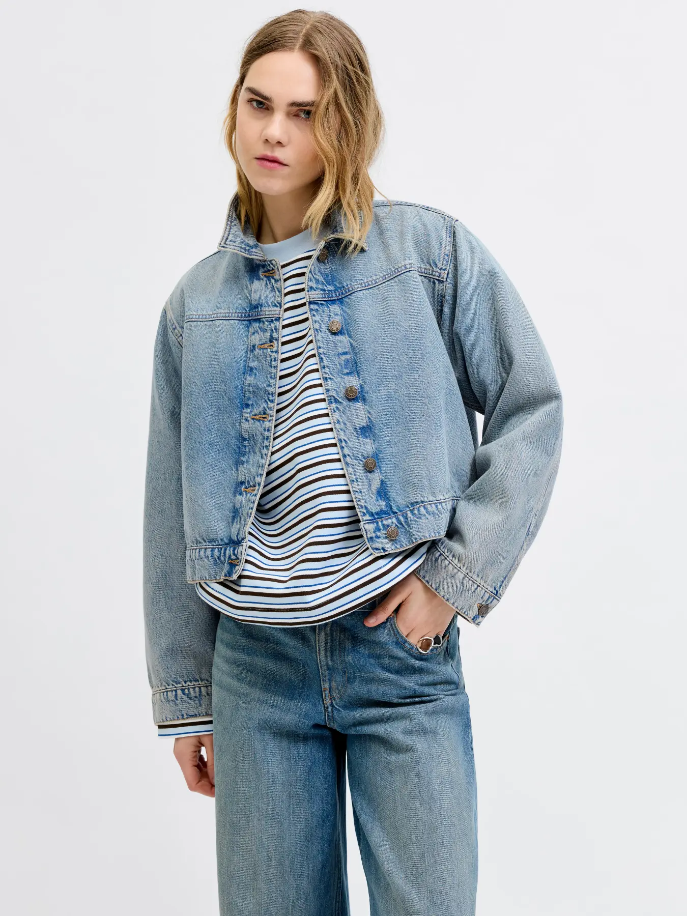JJXX Norma LS Jacket Denim giver dit outfit et cool løft med sin korte silhuet og afslappede pasform. Den let vaskede denim skaber et råt, moderne udtryk, mens den klassiske lukning gør den nem at style til både hverdag og mere trendy looks.