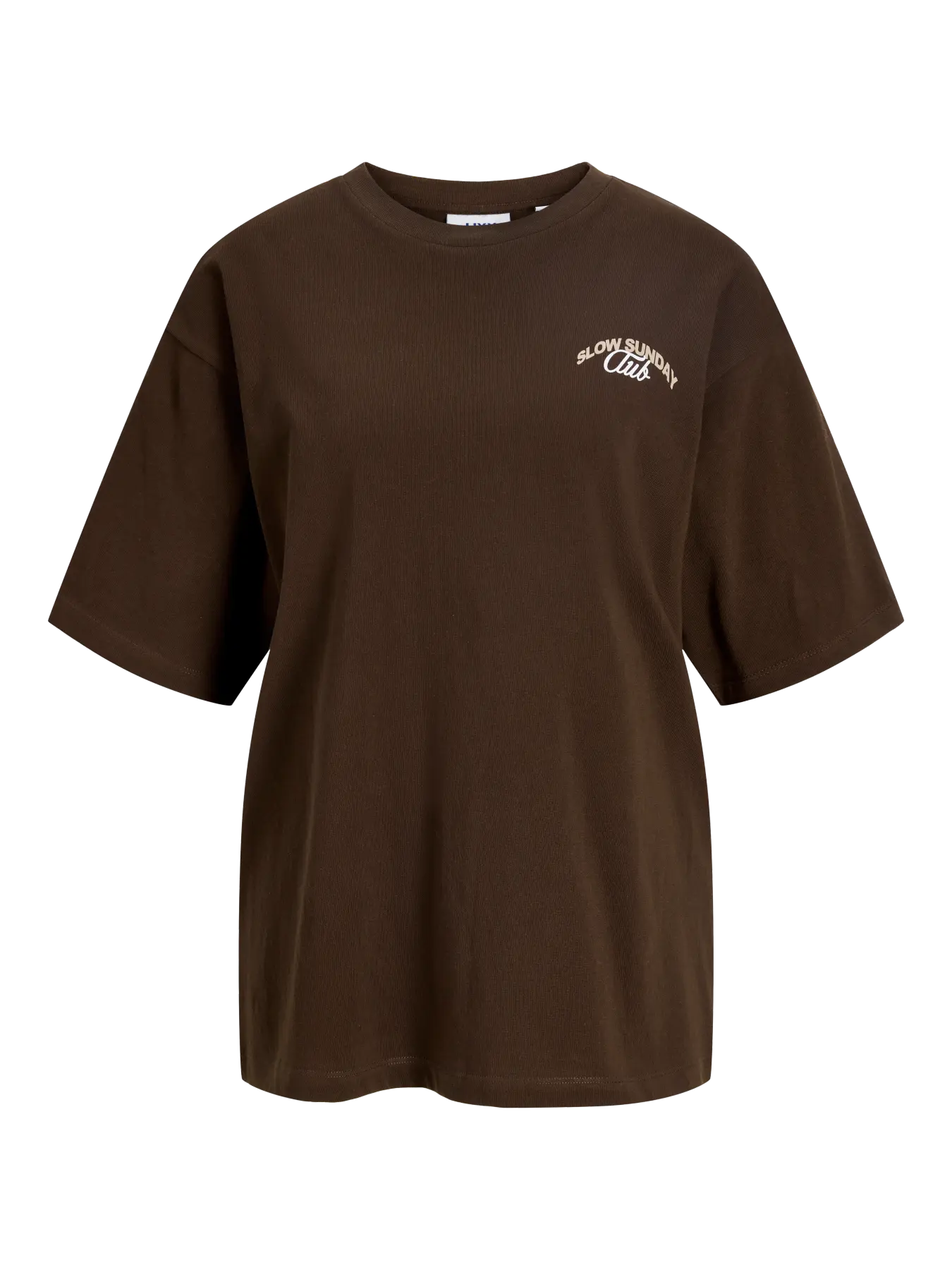 JJXX Millow Loose SS Tee Brun giver et afslappet og moderne look med sin løse pasform og bløde kvalitet. Den rene front kombineret med et iøjnefaldende print på ryggen skaber et cool udtryk, mens den varme brune farve gør den nem at style til både hverdag og casual outfits.
